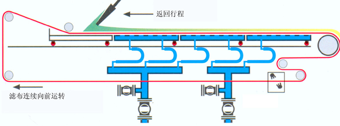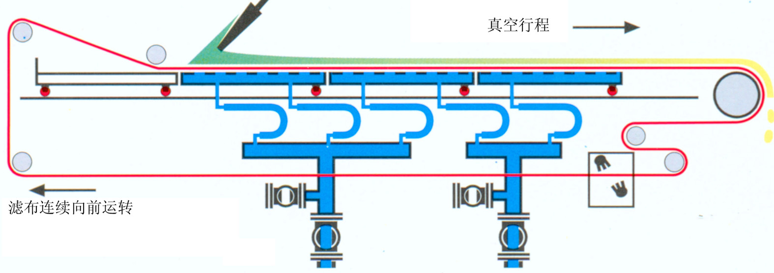 連續水平真空帶式過濾機可適用多種濃度條件下的物料,過濾效率高,連續水平真空帶式過濾機是一種自動化程度高的新型過濾設備,該機以過濾布或濾網為介質,使料漿水平布置于過濾介質上,充分利用料漿重力和真空吸力實現固液分離,因而被諸多工業部門優先采用。